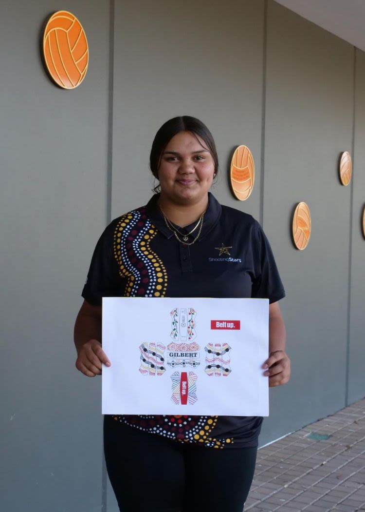 This year our very only Leonora Shooting Stars participant, Lakeisha, won the 2022 NAIDOC netball design competition. Lakeisha is a proud Wongutha/Yamatji artist from the Goldfields and participated in this year’s competition after having participated in the 2021 design competition. Her design incorporated many elements, including rainbow colours representing diversity, bush foods that sustain and nourish development, and the Aboriginal colours representing pride, strength and culture.
